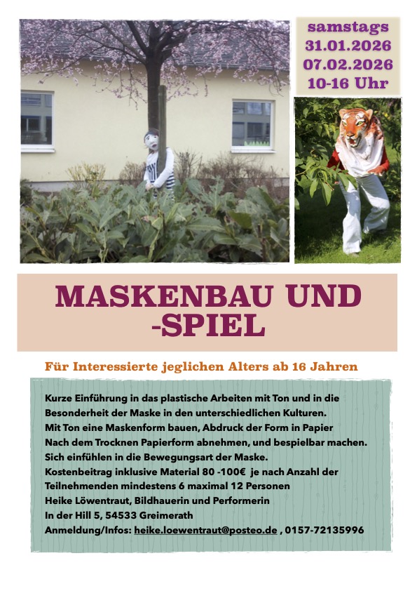 Ich habe Bildhauerei studiert und mich schon immer dafür interessiert, spartenübergreifend zu arbeiten. Durch die Arbeit mit Masken und mit einer theaterpädagogischen Grundausbildung im Gepäck, entwickelte sich mein Spaß, die spielerischen Möglichkeiten als einen Bestandteil in meine bildnerische Arbeit mit hinein zu nehmen. Ich leite Workshops mit allen Altersgruppen. https://www.youtube.com/@vielschichtig9608